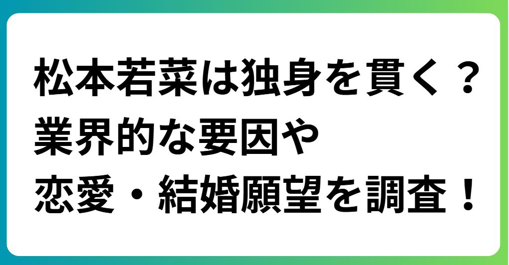 松本若菜は独身を貫く?業界的な要因や恋愛観・結婚願望を調べてみた!